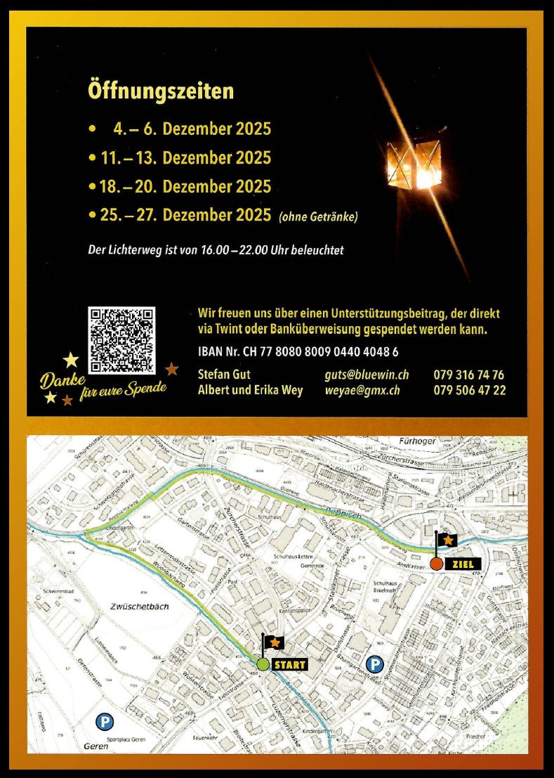 Herzlich willkommen beimLichterweg Birmensdorfim Dezember 2025